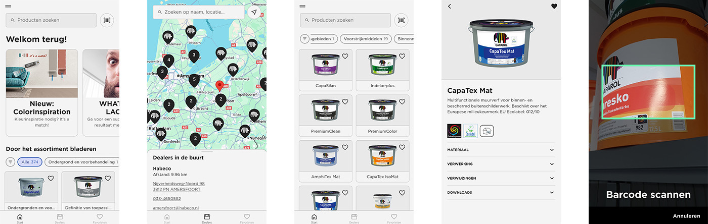 - Termékszkenner | Olvassa be a Caparol címkén található EAN-kódot a még gyorsabb kereséshez. A szkennelés után átirányítjuk a megfelelő termékhez, és hozzáférhet az összes elérhető információhoz.